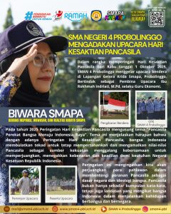 Di SMA Negeri 4 Probolinggo, kami bangga dengan keberadaan Kelompok Penegak (Praja Muda Karana) yang terus mengembangkan potensi diri melalui berbagai kegiatan pramuka. Dari latihan survival hingga kegiatan sosial, para pramuka kami terus belajar untuk menjadi insan yang berbudi pekerti dan berjiwa patriotik. mari kita bersama-sama teruslah menghidupkan semangat pramuka: