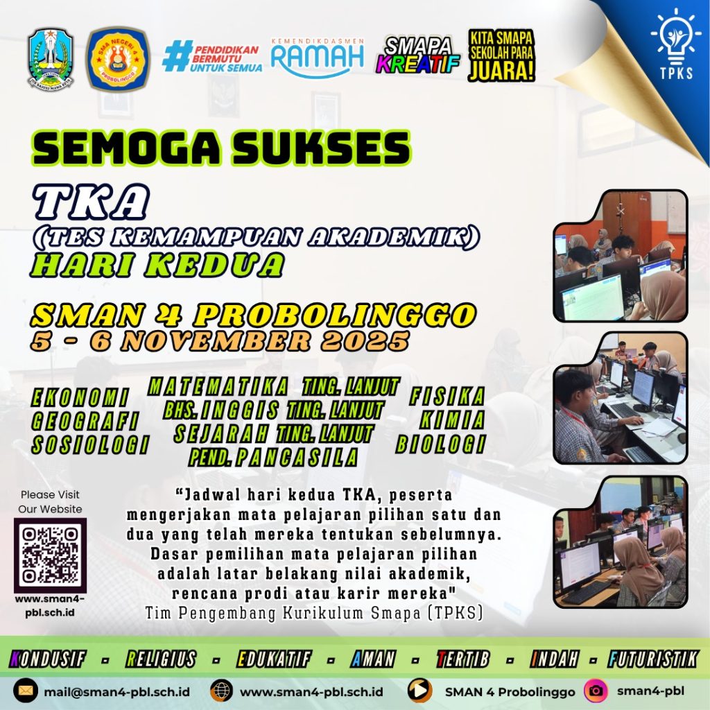 Selamat Menempuh TKA (Tes Kemampuan Akademik) SMA Negeri 4 Probolinggo Tahun 2025