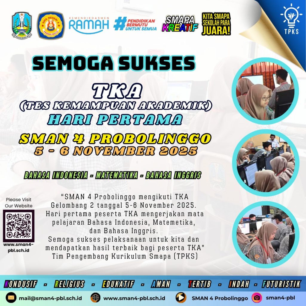 Selamat Menempuh TKA (Tes Kemampuan Akademik) SMA Negeri 4 Probolinggo Tahun 2025